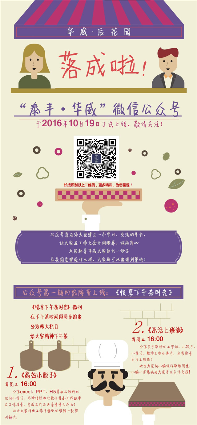 自2016年10月起,伴著下午茶的供應(yīng),人資行政部還推出了給大腦補充能量的“下午茶”——《悅享下午茶時光》微刊,每周三、周五下午4點,通過內(nèi)部微信公眾號跟大家分享各種搜羅而來的辦公軟件操作技巧、職場文章,幾分鐘時間,給大腦迅速充電。